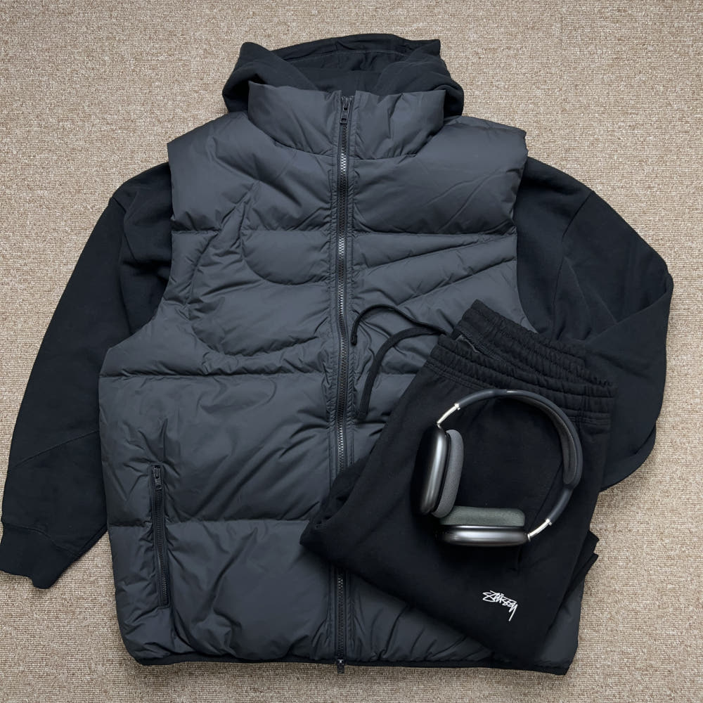 - 나이키 푸퍼 베스트: 루즈핏으로 제작되어 후드티 위에 입어도 넉넉한 공간감을 자랑합니다.